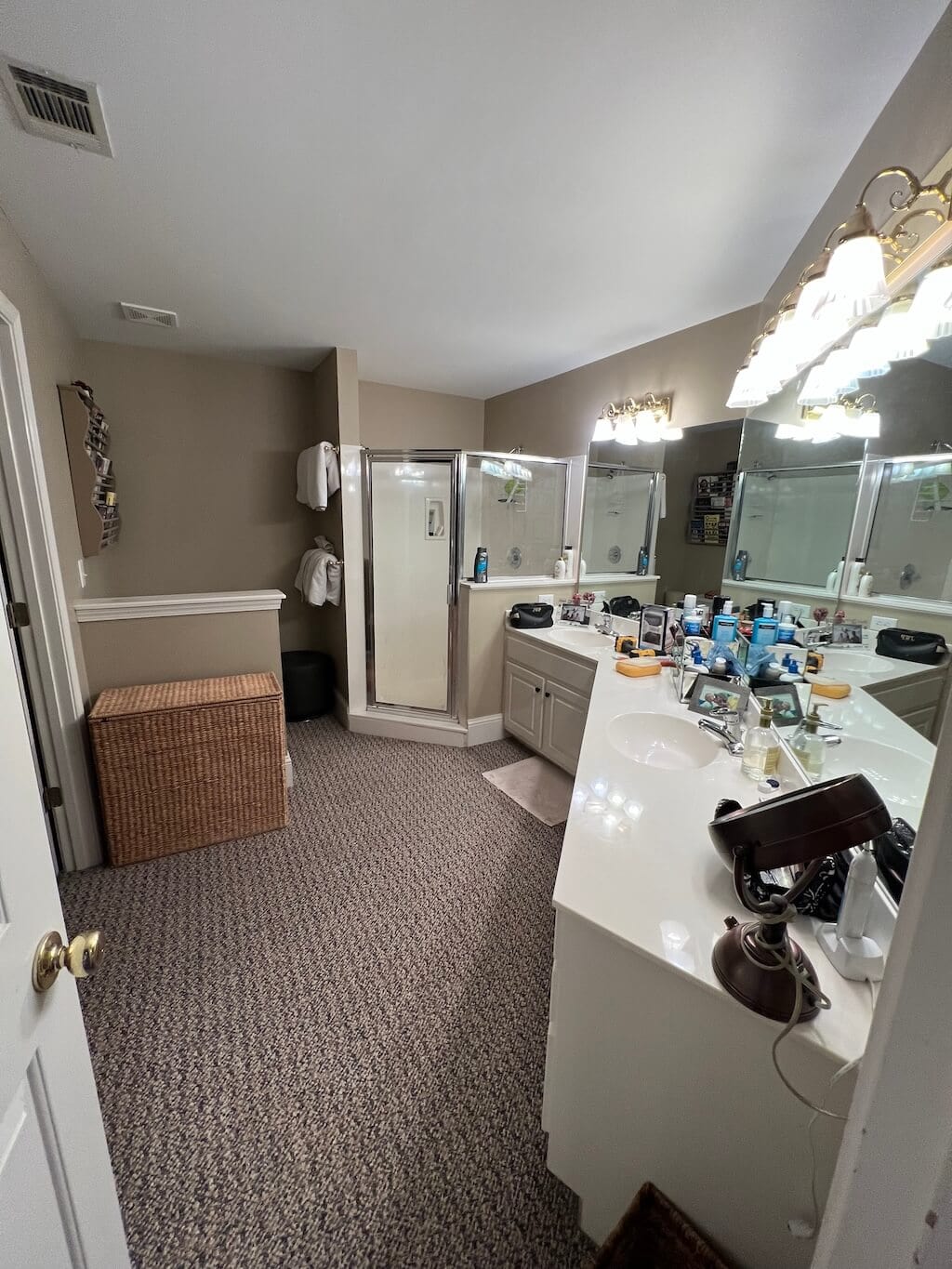 If you ever need proof that design choices can haunt you, please refer to my original master bathroom, which featured carpet. Yes, carpet. The kind that absorbs mystery moisture and makes you question every life decision that led you there.