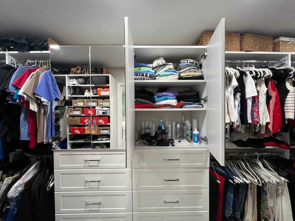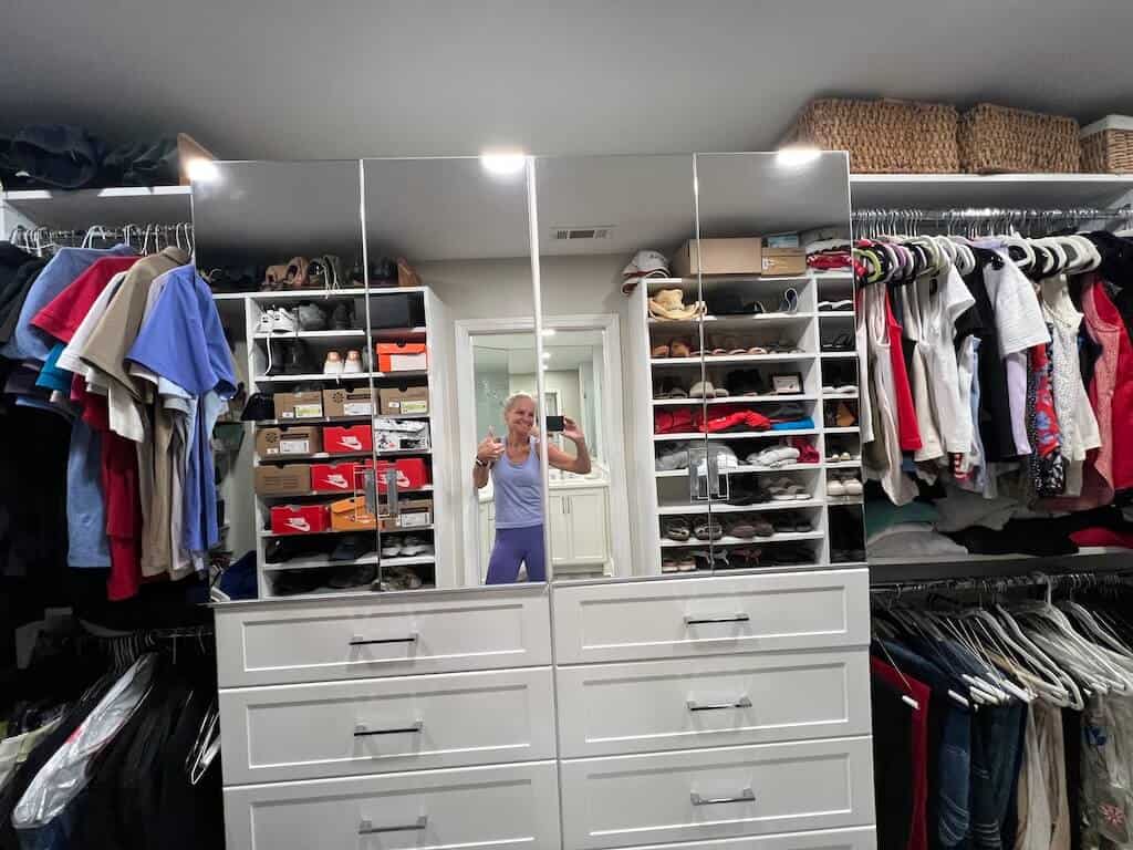 The fact that all my styling tools have officially relocated to my new closet behind a glamorous mirrored door. No cords, no bottles, no chaos. All the “uglies” are tucked away like misbehaving gremlins, leaving my bathroom serene, spotless, and always in order.